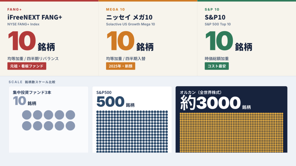 FANG+・メガ10・S&P10を比較|集中投資するならS&P10、でも僕が買わない理由