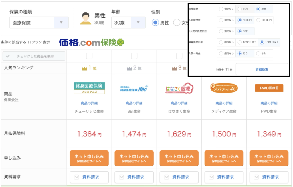 検索の一例:価格.com保険で試算してみる