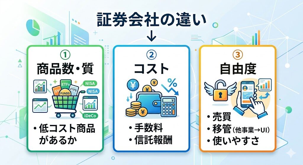 証券会社で投資の結果が変わる理由|商品・コスト・自由度の制約
