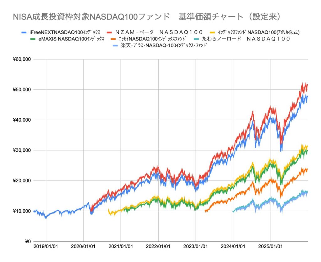 【3年比較】NASDAQ100インデックスファンドの実質リターン差を検証