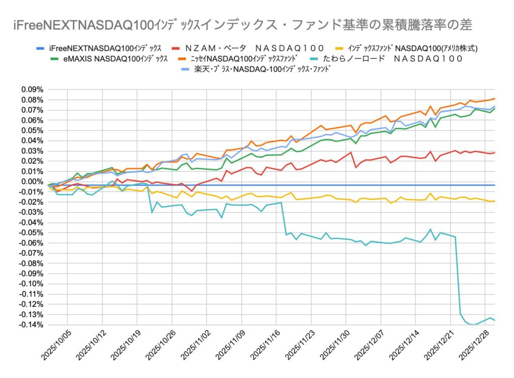 【3ヶ月比較】NASDAQ100インデックスファンドの実質リターン差を検証